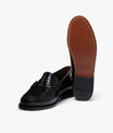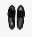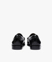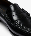 Sleek polished black leather penny loafer
