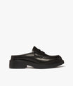 The Albany II Mule Penny Loafers in polished black leather is a modern mule design. Crafted in smooth polished leather with a rounded toe and our signature penny loafer detailing. Equal parts effortless and refined these women's mules deliver comfort from the first step thanks to the cushioned insole. The lightweight design and chunky rubber sole make them both practical and stylish, while a low block heel adds just the right amount of lift. Perfect for the office or nights out. Style them with everything from tailored trousers, relaxed denims to classic black dresses.