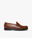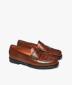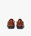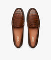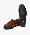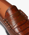 Mid brown burnished leather with croc embossed leather and rubber sole