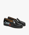 Add a little love to your walk with the Easy Weejuns Penny Love Note Loafers in Black Leather. Crafted by hand in polished black leather, these playful loafers feature a screen-printed red heart and the word “love” for a charming, whimsical finish. Lightweight, unlined, and cushioned, they combine heritage craftsmanship with modern comfort. Durable, water-resistant rubber soles make them perfect for all-year-round wear. Pairing with everything from tailored trousers to casual denim. A classic women's penny loafer with extra love and extra charm.