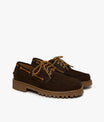 The Ranger Camp Moc in chocolate suede brings together classic moccasin heritage and modern functionality. Handsewn and finished with strong leather laces, every pair reflects G.H.BASS’s dedication to craftsmanship and enduring quality. The ultra-soft chocolate suede upper is supple yet durable, shaping naturally to your foot for immediate comfort. A cushioned insole ensures all-day wearability, while reinforced welt stitching and an EVA lug sole provide lasting durability, flexibility, and traction. Pair with navy chinos, corduroy trousers, or dark denim for smart-casual outfit. Ideal for city walks or casual summer days.