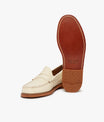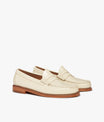 The Weejuns Larson Penny Loafer in off white leather shines with understated luxury. Crafted using our signature tubular moccasin construction techniques and finished with a reinforced flat welt stitch, these loafers are built to last. Lightweight and breathable, the easy slip-on design is paired with a soft, foam-padded insoles for enhanced comfort. The stacked leather heel, flexible leather sole, and slip-resistant heel tap, deliver stability and support where it matters most. Perfect for smart-casual looks, summer events, or your office wear. These loafers will pull any jeans and shirt combination together.